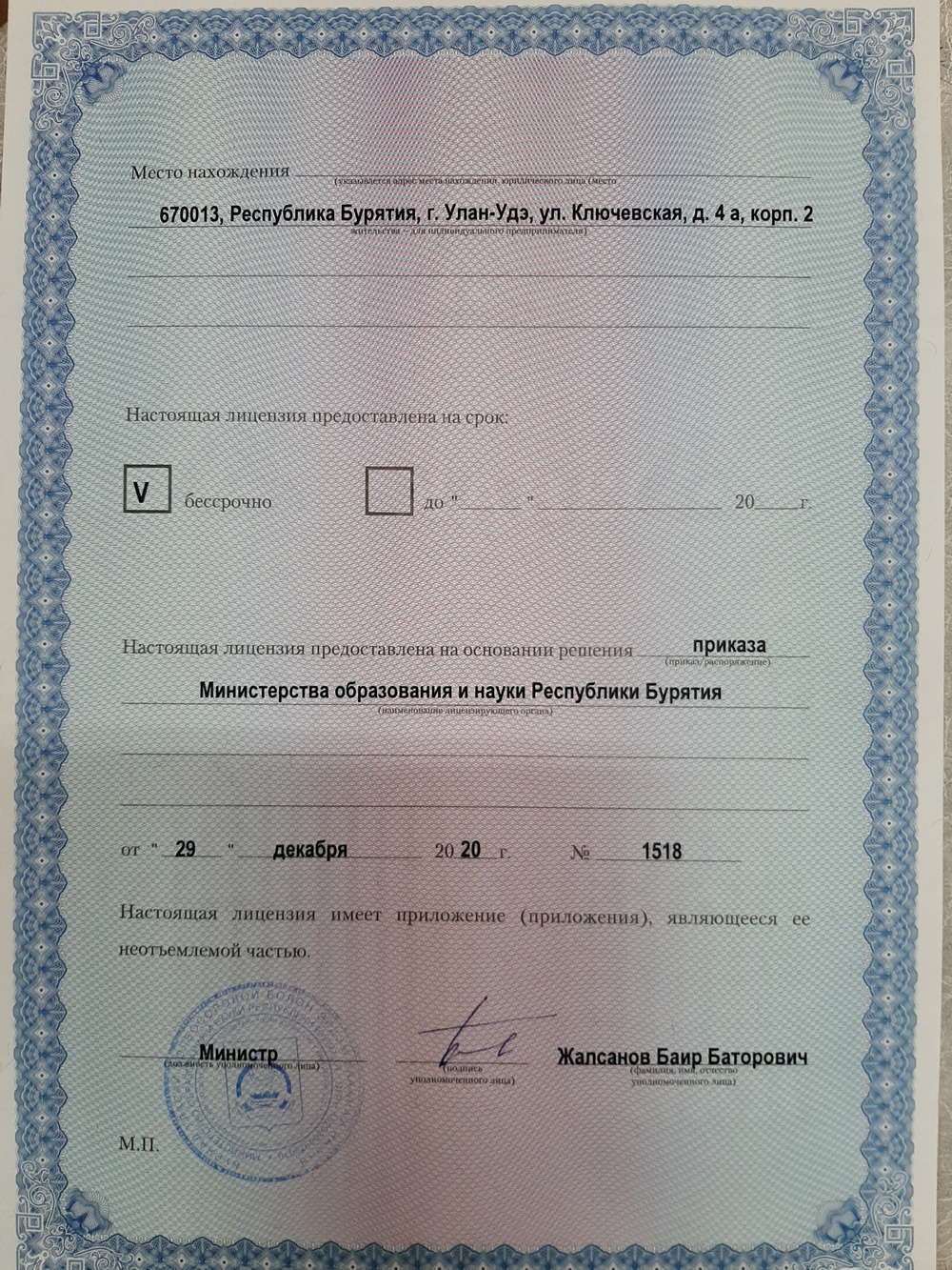 Лицензия от Мин. образования и науки РБ №3282 лицевая сторона.jpg