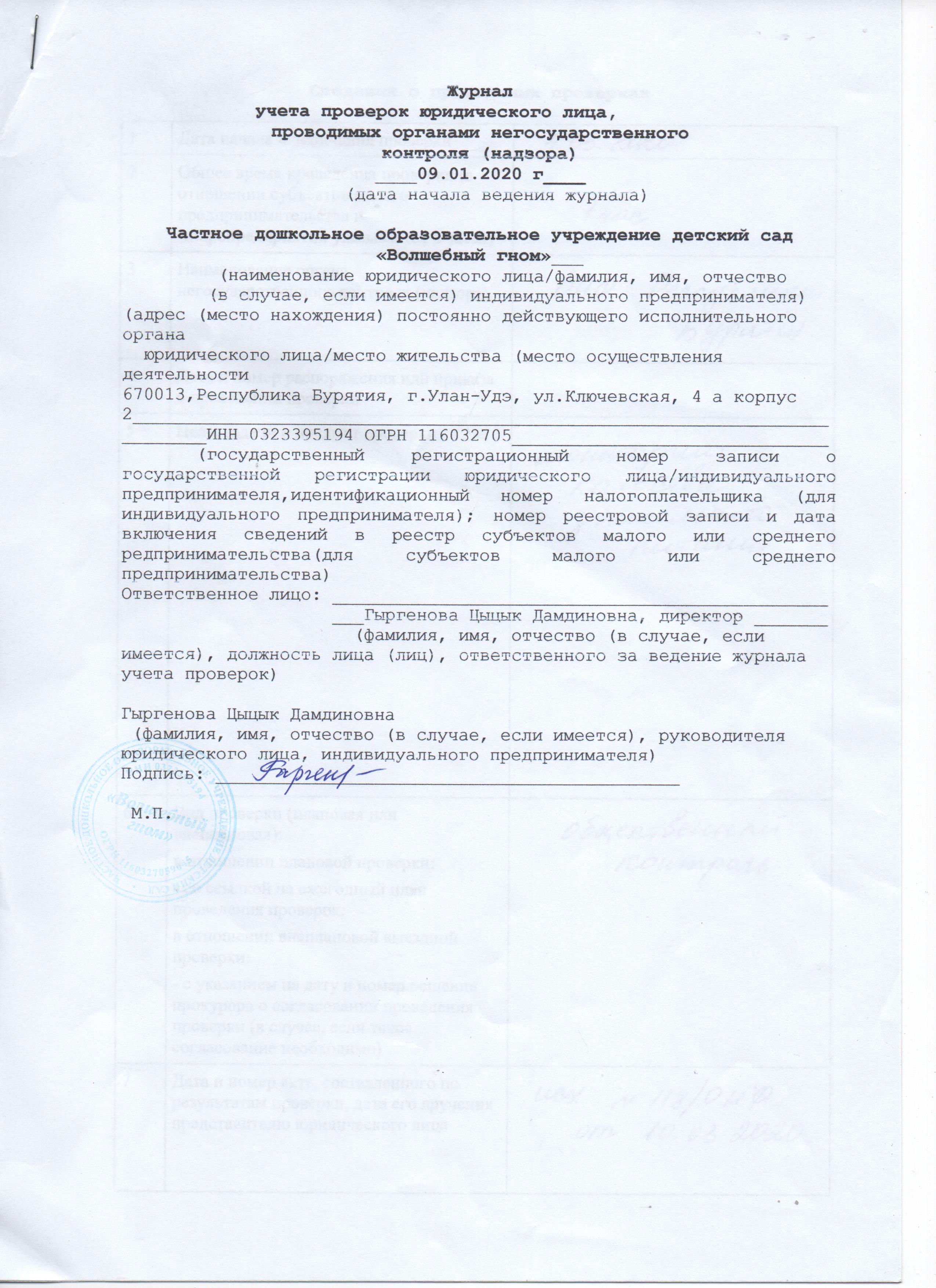 Журнал учёта проверок
